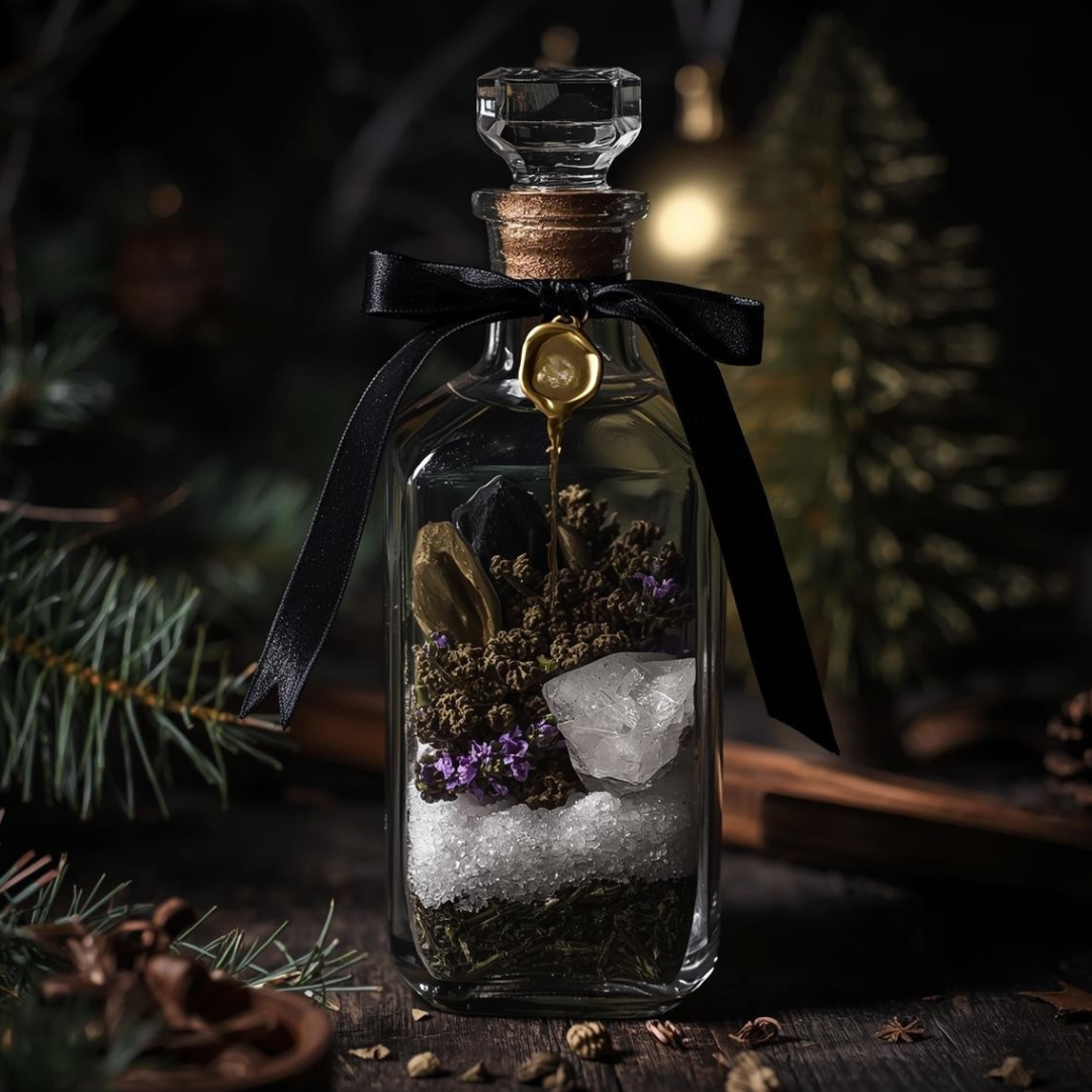 These blends are wildcrafted and charged beneath the winter moon, steeped with herbs, salts, and roots that comfort the body while tending the spirit.